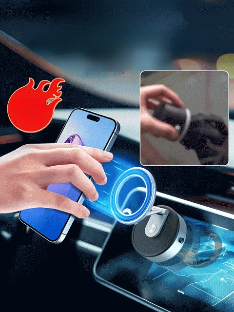 【เขย่าแรงก็ไม่หลุด】ที่วางโทรศัพท์แบบดูดสองด้านด้วยแม่เหล็กและถ้วยดูด