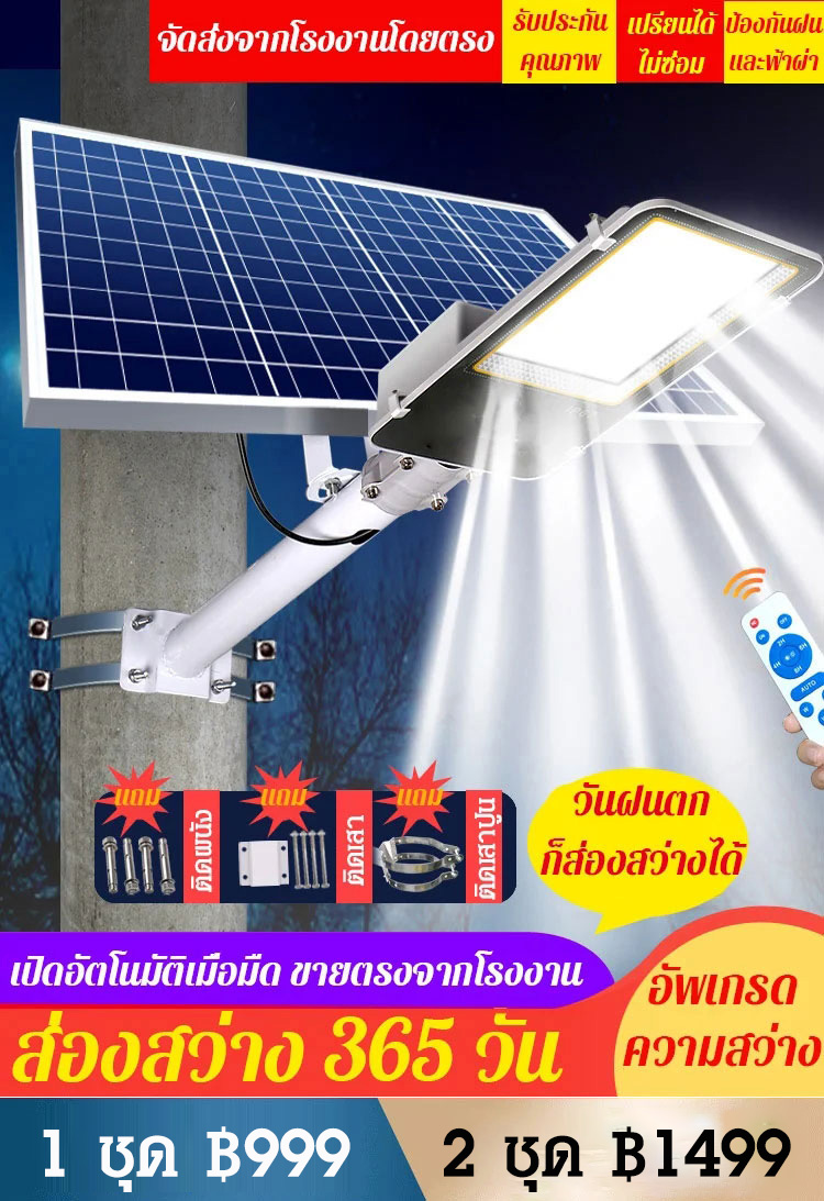[ส่องสว่างถนนทั้งหมู่บ้าน] ไฟถนนพลังงานแสงอาทิตย์ กันน้ำ ความสว่างสูง