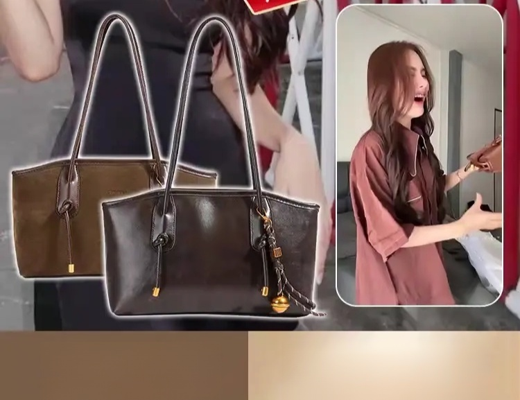 กระเป๋าสะพายข้างหนังกลับความจุใหญ่สไตล์ย้อนยุค