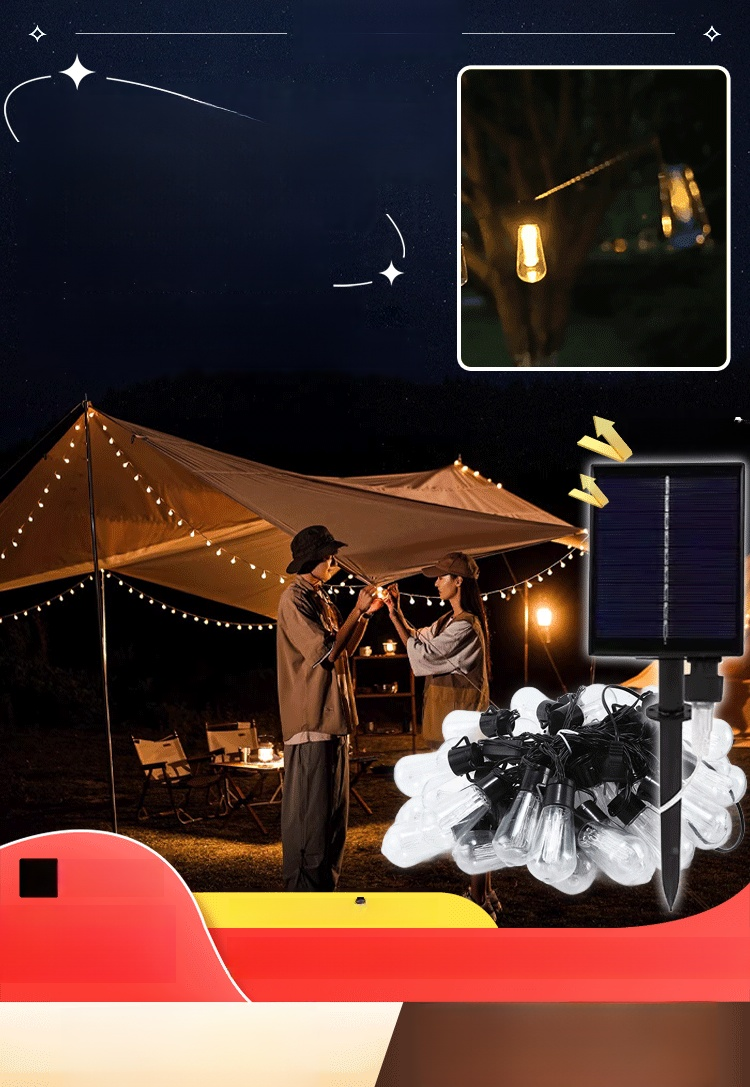 โคมไฟโซลาร์เซลล์ตกแต่งสวนลานบ้านกลางแจ้งและแคมป์ปิ้ง